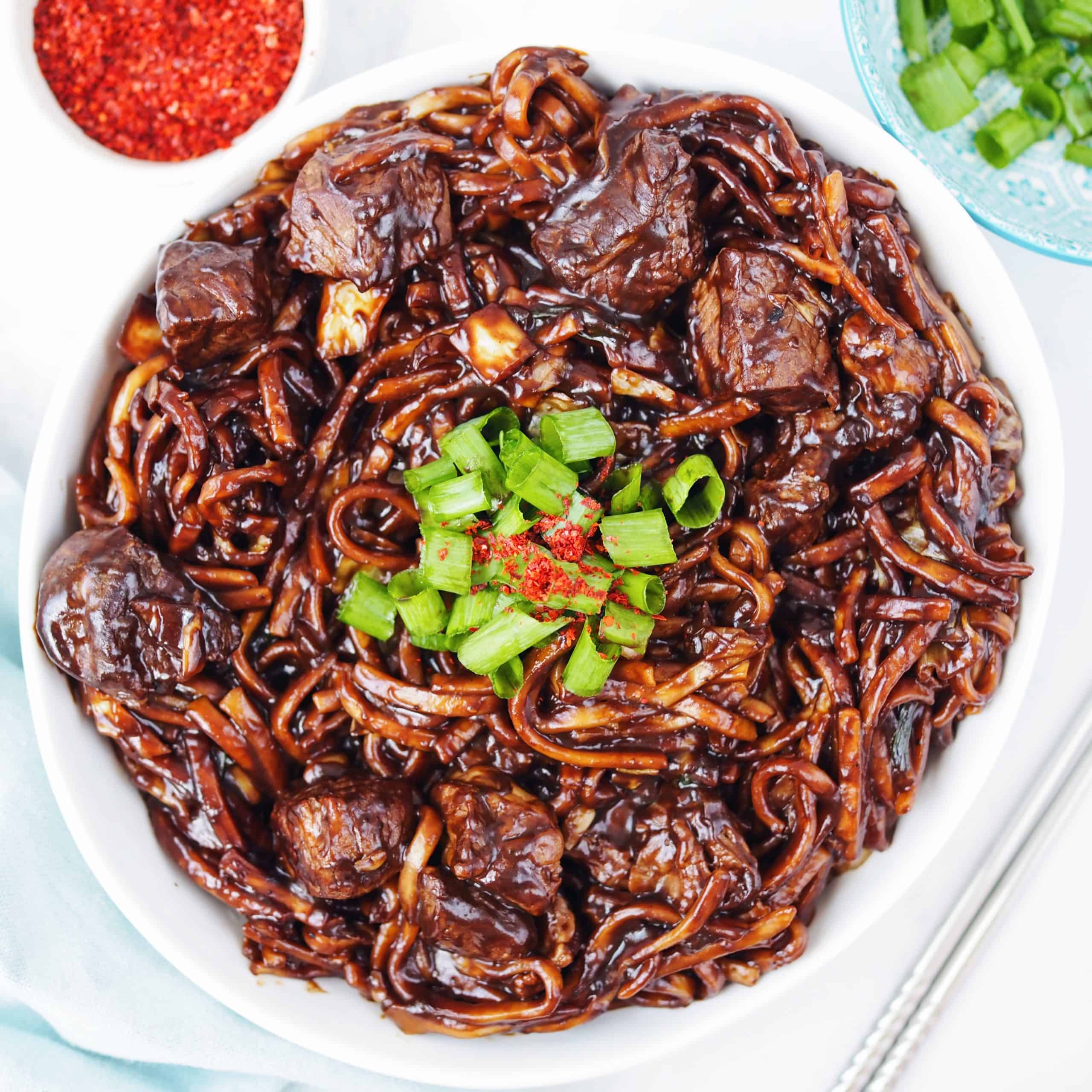 - Korean roasted black bean sauce: aka chunjang that you can find at most Korean markets. Or substitute with Chinese roasted black bean sauce.