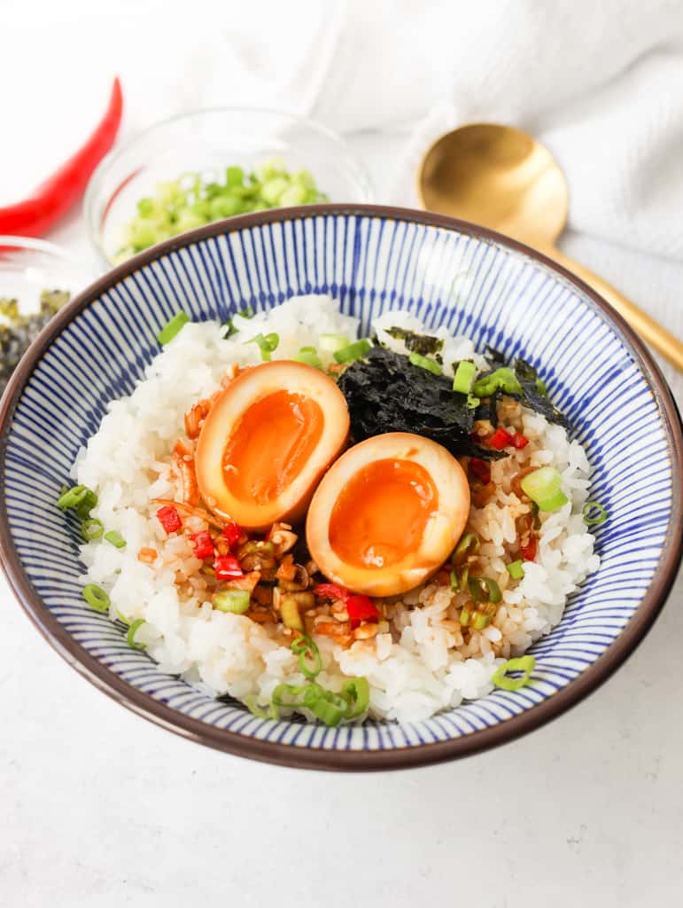 These Asian-style eggs are fantastic for meal preparation or busy weeknights when you have little time or energy to cook. You can prepare them in advance and whip them out of the fridge to enjoy cold.