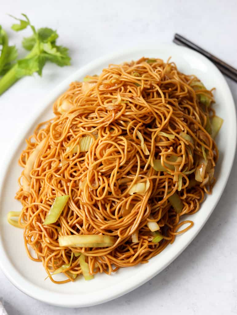 Chewy chow mein noodles stir fried in a savory sauce with crunchy cabbage, celery, onions. This quick and easy Panda Express Chow Mein is ready in 15 minutes in one pan with simple ingredients! A great side beating takeout saving you money.