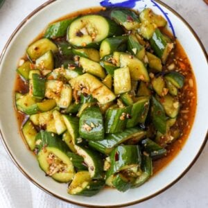 I love enjoying this Chinese-style cucumber dish with steamed rice and a protein dish.