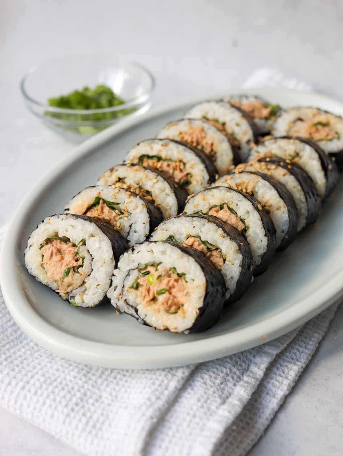 - Green onion: to balance out the fishy taste in the tuna.