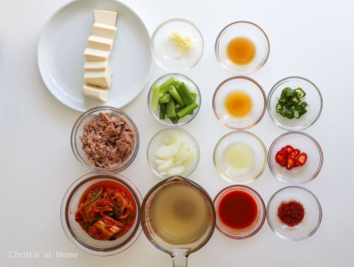 A spicy savory Korean stew packed with kimchi, tender tuna, soft tofu, and onions. This quick and easy Tuna Kimchi Jjigae is made with simple ingredients and it's so comforting! Better-than-takeout and budget friendly.